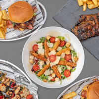 “ Raciones grandes y están buenas, aunque no hay mucha variedad (nachos, tequeños, alitas, patatas rancheras y poco más). Luego tienen parrilla (hamburguesas, costillas). El personal es muy amable pero un poco agobiante pasando constantemente a quitarte cosas de la mesa (una servilleta, un plato, un vaso). ”